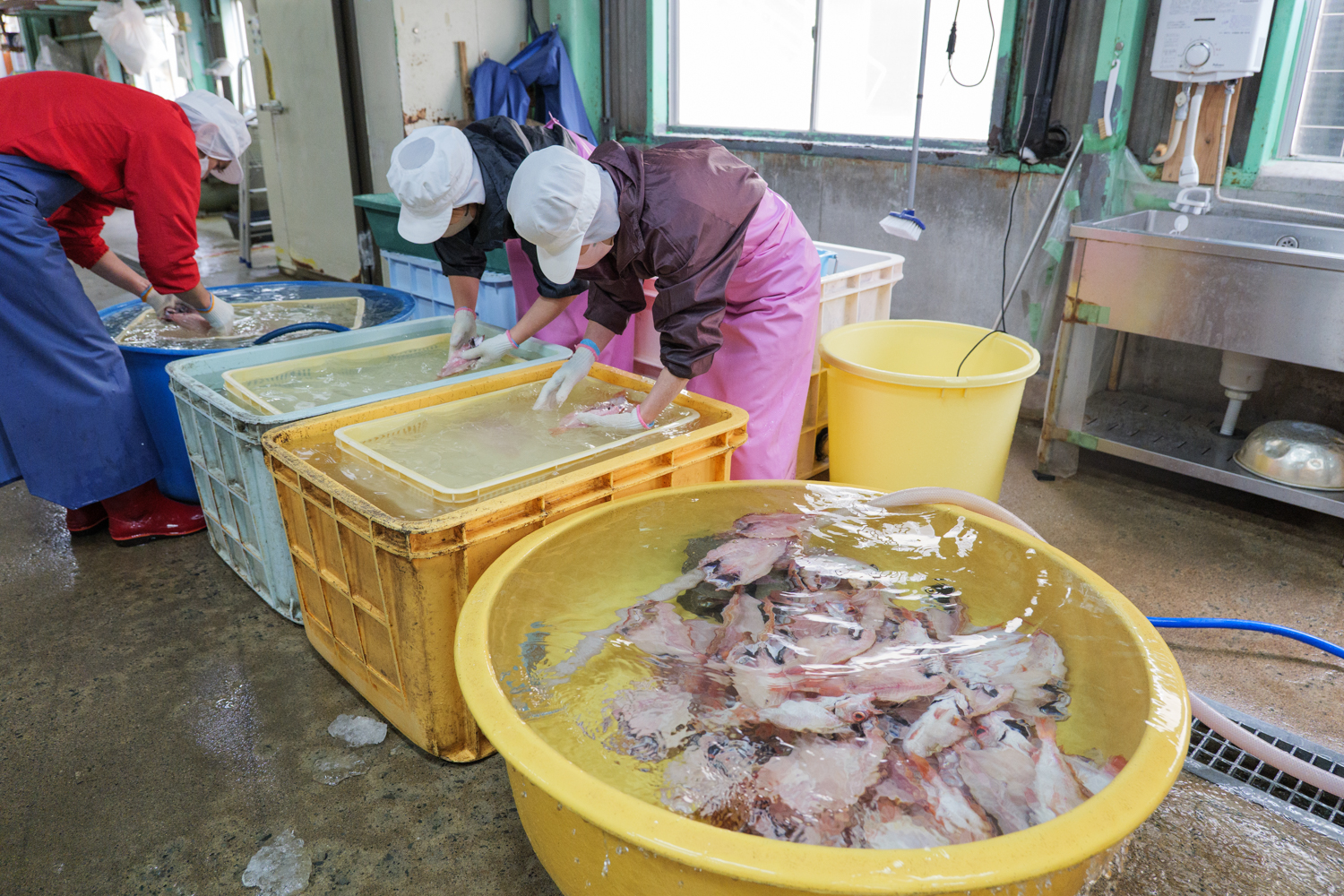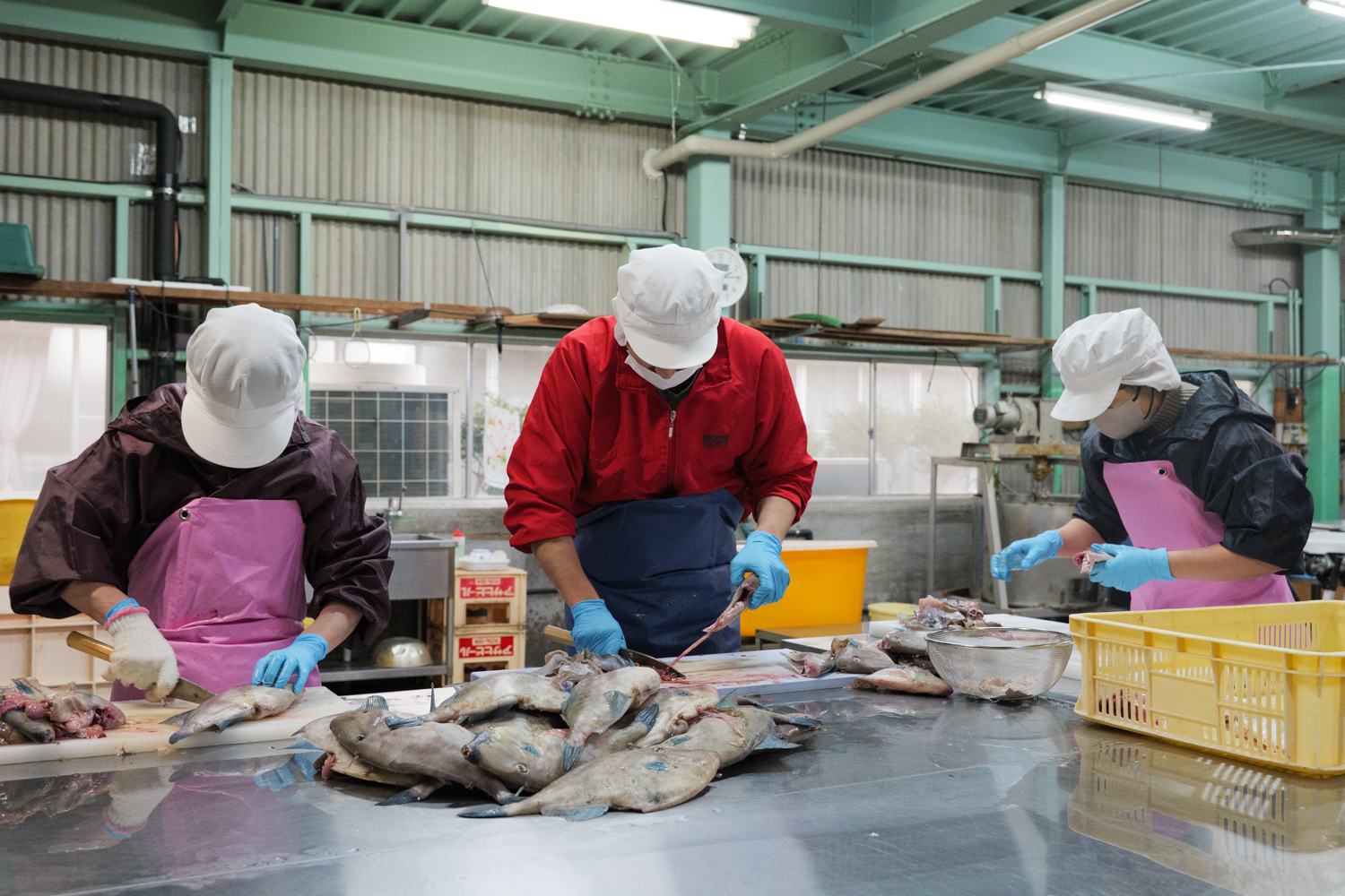 水揚げされた魚は、競りにかけられた後に加工場に届き、職人の手によって捌かれていきます。